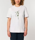 Each t-shirt is individually silkscreened, ensuring a unique and exquisite touch. Due to the handmade nature of the silkscreen process, colors may slightly vary from one piece to another, making every t-shirt a true work of art. Embrace the beauty of these subtle variations that add character and charm to your wardrobe.