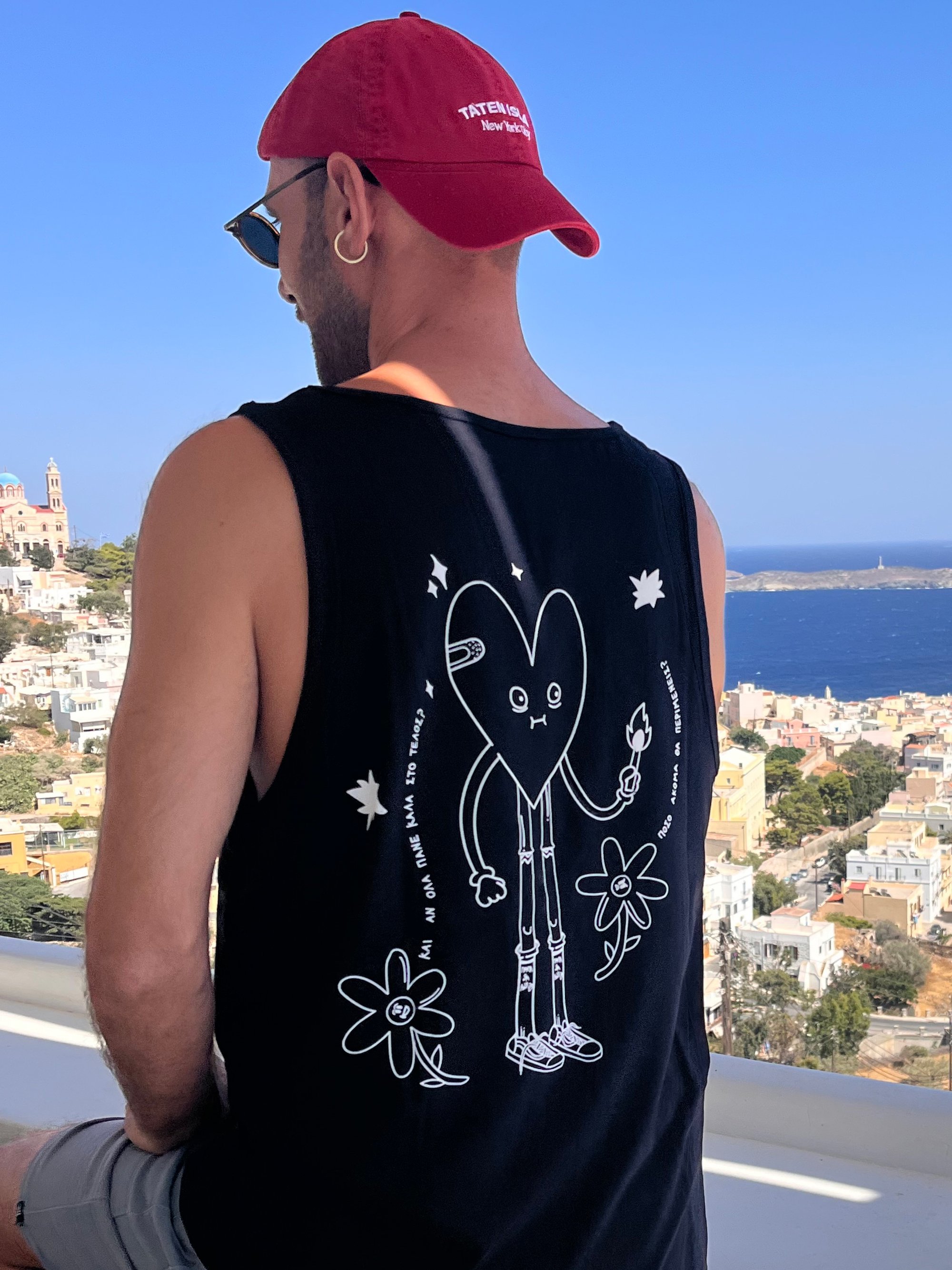 The beauty of our silkscreen tank top lies in the intricate designs, all created in our studio based in Athens using the traditional silkscreen printing technique. Each stroke of color and pattern is meticulously applied, resulting in a rich and vibrant design that's bound to turn heads and spark conversations wherever you go.