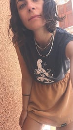 The beauty of our silkscreen "Witch Daughter" Vest lies in the intricate designs, all created in our studio based in Athens using the traditional silkscreen printing technique. Each stroke of color and pattern is meticulously applied, resulting in a rich and vibrant design that's bound to turn heads and spark conversations wherever you go.